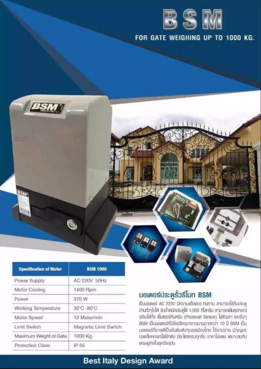 รีโมทอัตโนมัติ วัสดุ มีของประเทศจีน ใต้หวัน อิตาลี ที่เป็นที่นิยมมากที่สุดคือยี่ห้อ BSM มาตรฐานอิตาลีผลิตประเทศจีน สามารถรับน้ำหนักได้ 800-1000 กิโลกรัม ราคาเริ่มต้น 13,900 บาท รับประกัน 1 ปี